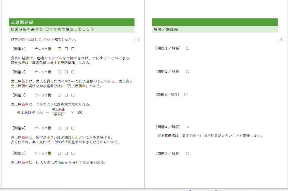 問題集は、経営分析編とビジネス会計編の2つの項目から出題されます。〇✖式の正誤問題、択一問題及び計算問題で、経営分析編55問、ビジネス会計編55問あります。